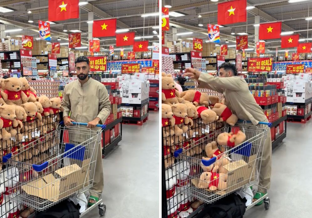 Trong video, nam du khách liên tục lấy số lượng lớn hàng hóa từ kệ và cho vào giỏ, từ gấu bông, giấy vệ sinh đến mì gói, gia vị hay nước giặt. Hành động này ban đầu khiến nhiều người lầm tưởng anh đang “quậy” siêu thị hoặc cố tình tạo nội dung gây chú ý. Tuy nhiên, khi theo dõi đến cuối, không ít người bất ngờ khi biết toàn bộ số hàng hóa trên được anh dùng để làm từ thiện.