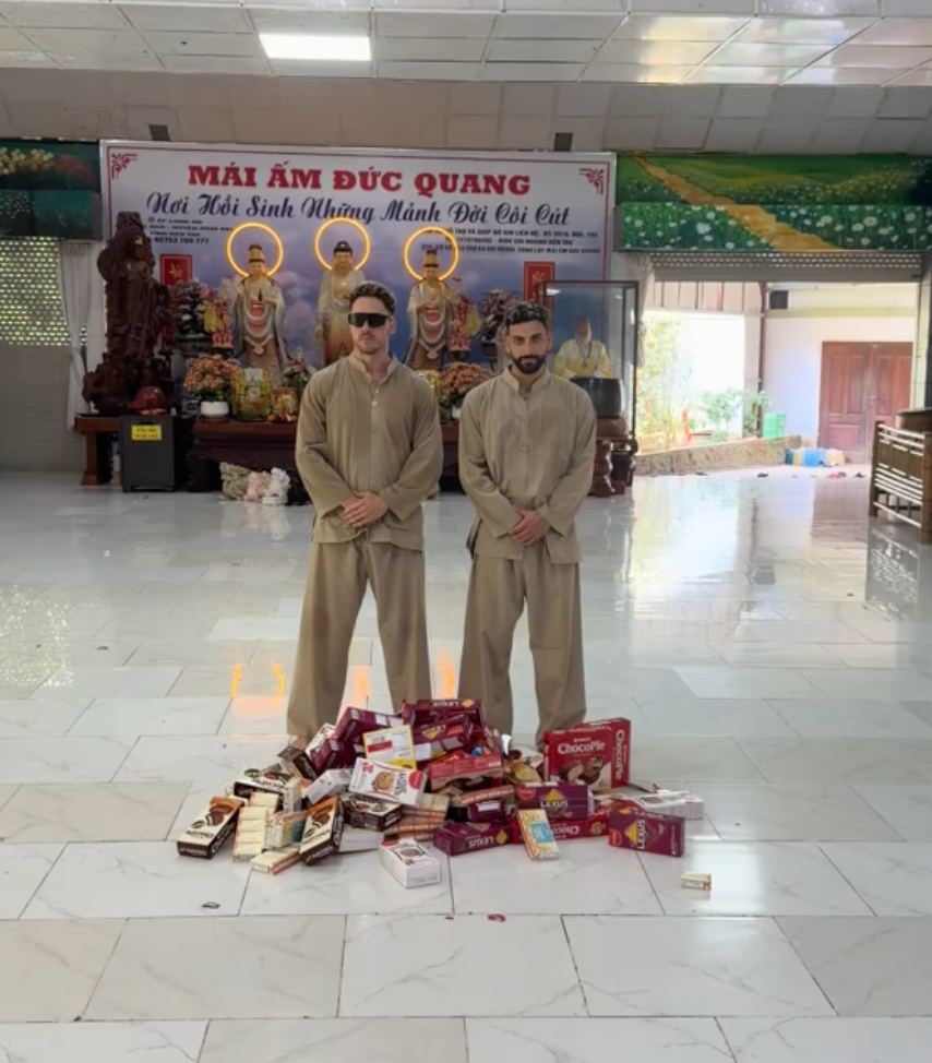 Cụ thể, Cevo Ali đã mang toàn bộ quà tặng đến mái ấm Đức Quang - nơi nuôi dưỡng trẻ em mồ côi. Không dừng lại ở việc trao quà, anh cùng bạn đồng hành còn trực tiếp chuẩn bị và nấu hàng trăm suất ăn cho các em nhỏ. Hình ảnh các em quây quần, vui vẻ nhận quà và tương tác thân thiết với hai vị khách nước ngoài nhanh chóng lan tỏa trên mạng xã hội.
