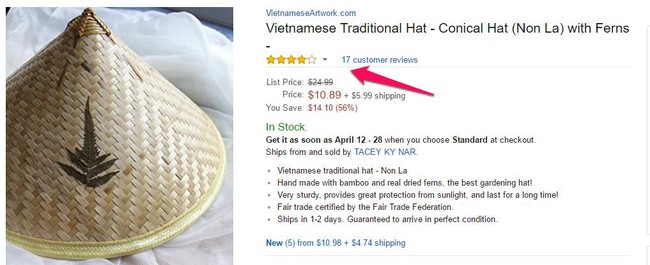 Thật không khó để nhận thấy sản phẩm truyền thống của chúng ta nhận được đánh giá (rating) rất cao từ khách hàng. Nhưng hãy nhìn kỹ số lượt rating mà xem, chỉ có 17 người mà thôi. Điều đó đồng nghĩa với việc, số lượng người mua hàng không nhiều, vì phần lớn các khách hàng nước ngoài luôn giữ thói quen để lại đánh giá sau khi nhận được và trải nghiệm sản phẩm.