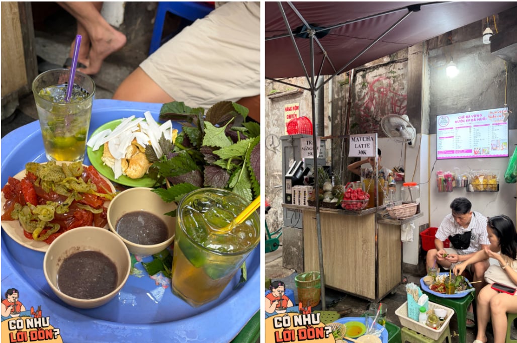 Quán sứa cô Tuyết nhỏ xíu, chỉ tầm vài mét vuông, kê được 2 bàn dài, ngồi khoảng 6-7 người là kín. Đông là chuyện hiển nhiên, nên nếu hết chỗ, bạn sẽ được “điều phối” sang quán nước đối diện ngồi ké. Nhưng đã ngồi thì phải gọi nước - luật bất thành văn của những quán “cộng sinh” với nhau ở Hà Nội. Có Như Lời Đồn gọi 2 cốc nước sấu và trà tắc, mỗi cốc giá 15.000 đồng, coi như vé vào bàn.