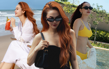 Một buổi sáng chơi pickleball trong outfit thể thao hồng phấn, cô dí dỏm viết: "Em là cô gái yêu màu hồng, mời các bạn điền tiếp phần sau." Một chiều ở Amanoi, cô thả dáng giữa thiên nhiên cùng caption nhẹ tênh: "Thật khó để không lưu luyến nơi đẹp như thế này." Hay chỉ đơn giản là bức ảnh "đi dạo" trong chiếc áo phông và mũ lưỡi trai, nhưng vẫn rạng rỡ như cô gái tuổi đôi mươi.
