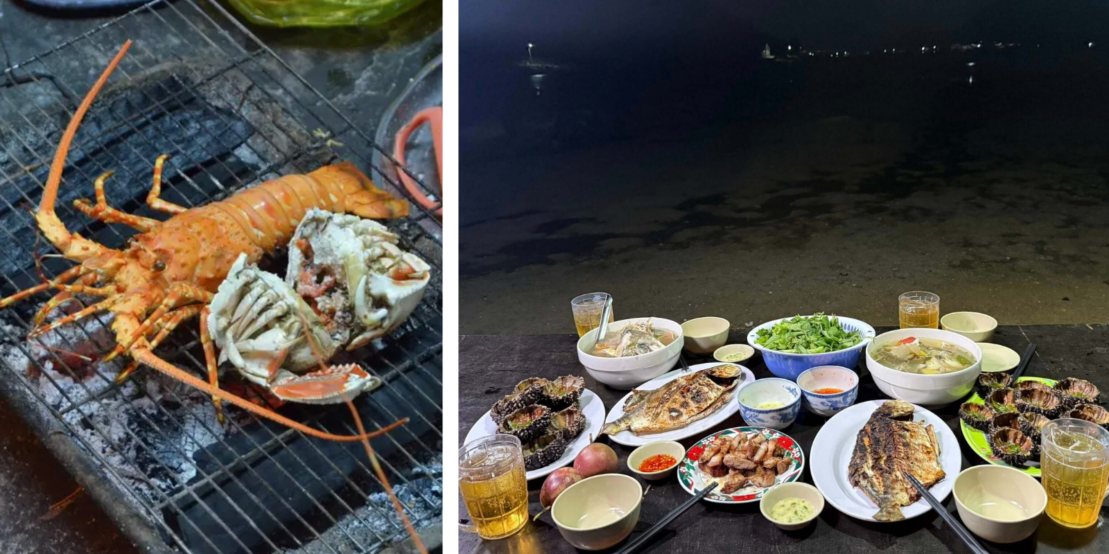 Sẽ là một thiếu sót lớn nếu bạn bỏ qua cơ hội thưởng thức các món hải sản tươi ngon được chế biến theo cách truyền thống như nhum nướng mỡ hành, cá nướng, mực hấp đơn giản nhưng giữ trọn hương vị nguyên bản của biển cả. Đặc biệt nhất là sáng hôm sau, thành quả từ buổi đi câu mực đêm của bạn sẽ được chế biến thành đĩa sashimi mực giòn sần sật, hoặc dĩa mì tôm xào mực thơm nức mũi.