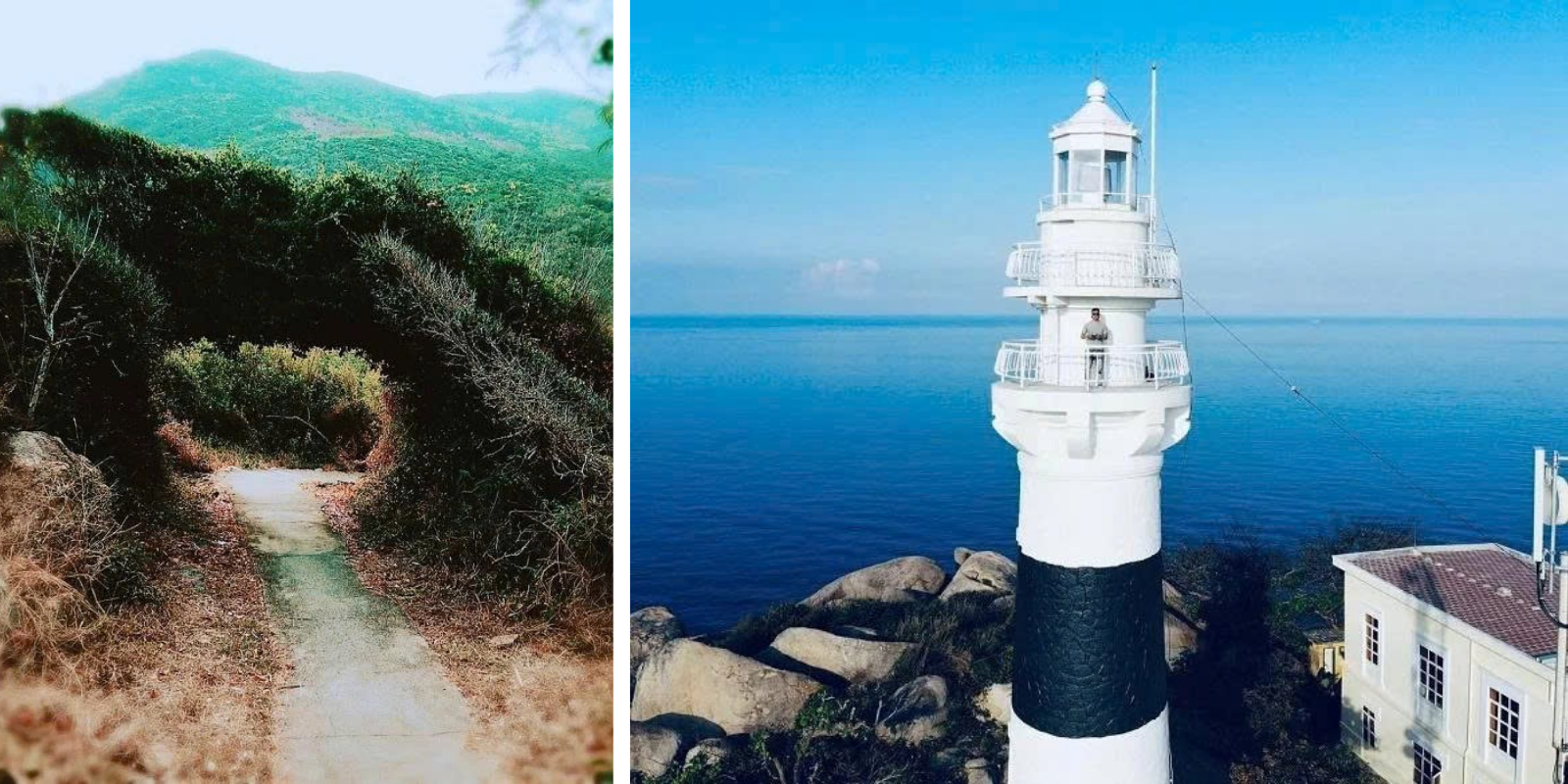 Đường lên hải đăng tuy phải thả bộ băng qua những tán rừng nguyên sinh, nhưng bù lại, cảnh sắc dọc đường với ánh nắng chói chang rớt qua từng kẽ lá lại cực kỳ mộng mơ. Khi chạm đến điểm cao nhất của đảo, từ ngọn hải đăng nhìn xuống thu vào tầm mắt là toàn cảnh vịnh biển bao la và làng chài bình yên bên dưới. Cảm giác đứng trước không gian mênh mông, đón gió lộng lùa qua tóc và ngắm nhìn những chiếc thuyền thúng nhỏ bé điểm xuyết trên nền biển xanh ngọc bích thực sự rất tuyệt.