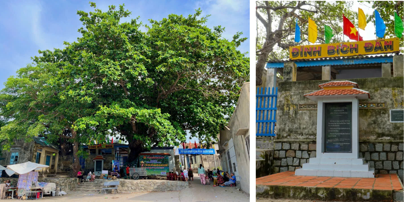 Thay vì mải mê với sóng nước, hãy thử bước chậm lại để cảm nhận chiều sâu văn hóa của làng chài. Nằm nép mình bình yên trên đảo, Đình làng Bích Đầm (được công nhận là Di tích lịch sử - văn hóa cấp tỉnh) là một công trình cổ kính từ giữa thế kỷ 19 mang đậm nét kiến trúc Nam Trung Bộ. Ngay trước sân đình là "Di sản Việt Nam", cây bàng cổ thụ hơn 150 tuổi uy nghi, tỏa bóng mát rượi, như một người bảo vệ thầm lặng của đảo.