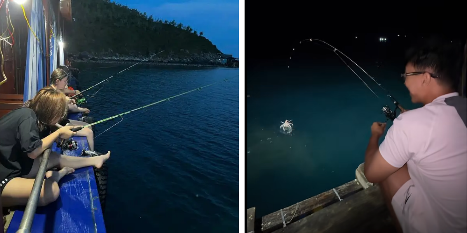 Đây là "đặc sản" mà bạn nhất định phải thử. Tối đến, hãy xin theo ghe của các anh ngư dân ra xa bờ một chút. Cảm giác ngồi thong thả giữa biển đêm, tự tay giật cần câu lên được những con mực tươi rói giữa lòng đại dương. Cảm giác cực kỳ phấn khích.