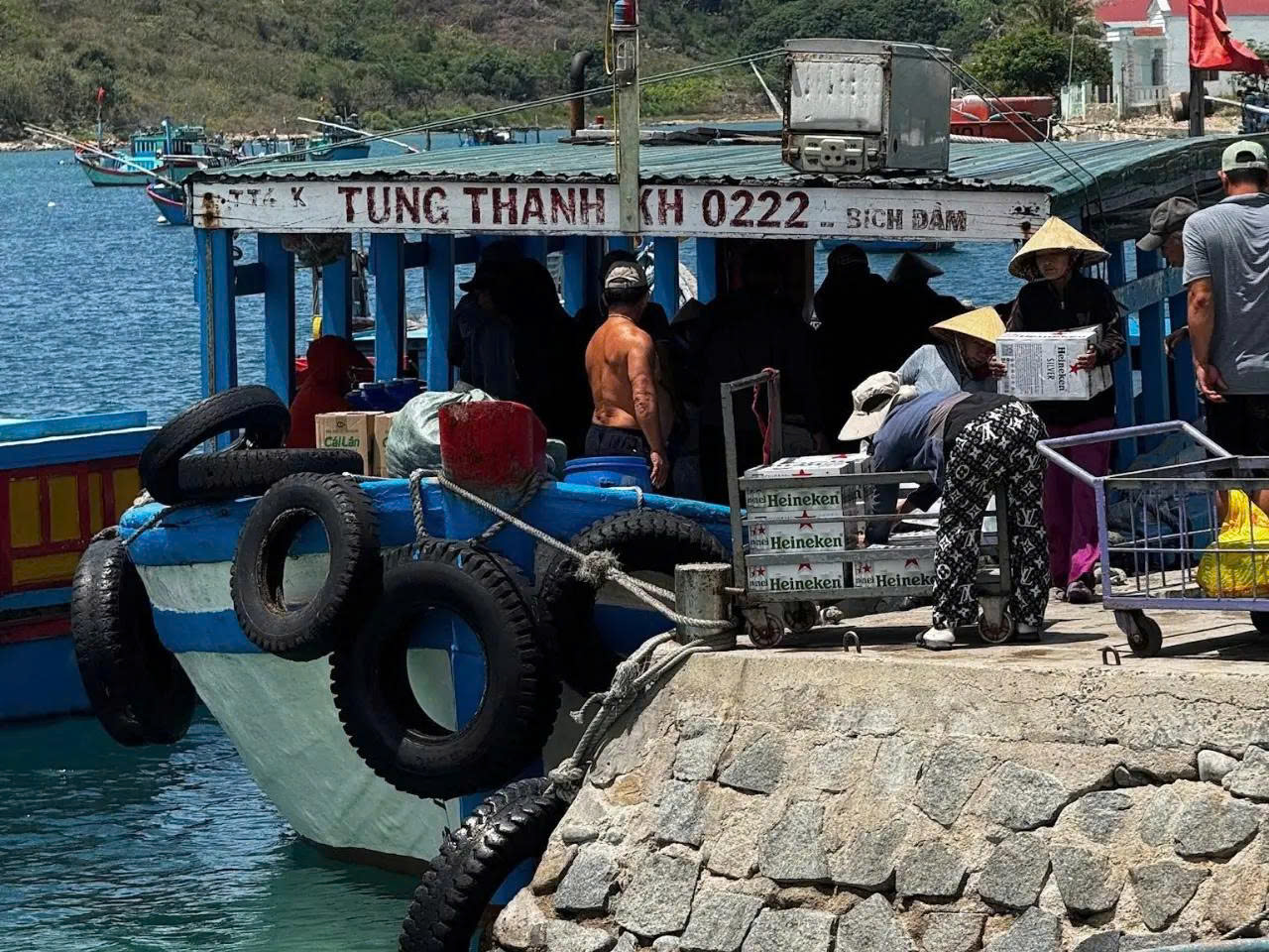 Chuyến tàu gỗ đưa người dân qua đảo Bích Đầm