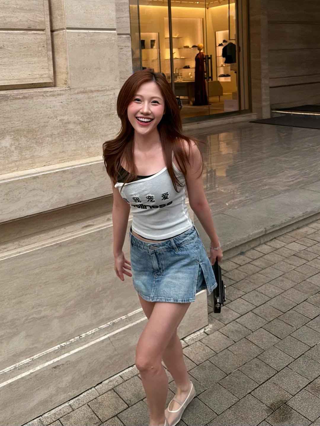 Vẫn là đôi dép cao gót “must-have” mùa hè, trong một outfit khác, Uyển Ân chọn phối cùng áo hai dây và chân váy ngắn, tạo nên tổng thể điệu đà, xinh xắn hết nấc. Những item cơ bản nhưng được mix-match tinh tế vẫn dễ dàng ghi điểm cho vẻ ngoài, chị em hoàn toàn có thể tham khảo để làm mới tủ đồ hè năm nay.