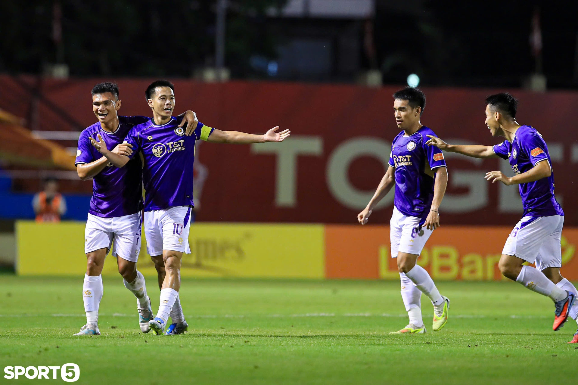 Văn Quyết cùng các đồng đội ăn mừng bàn thắng