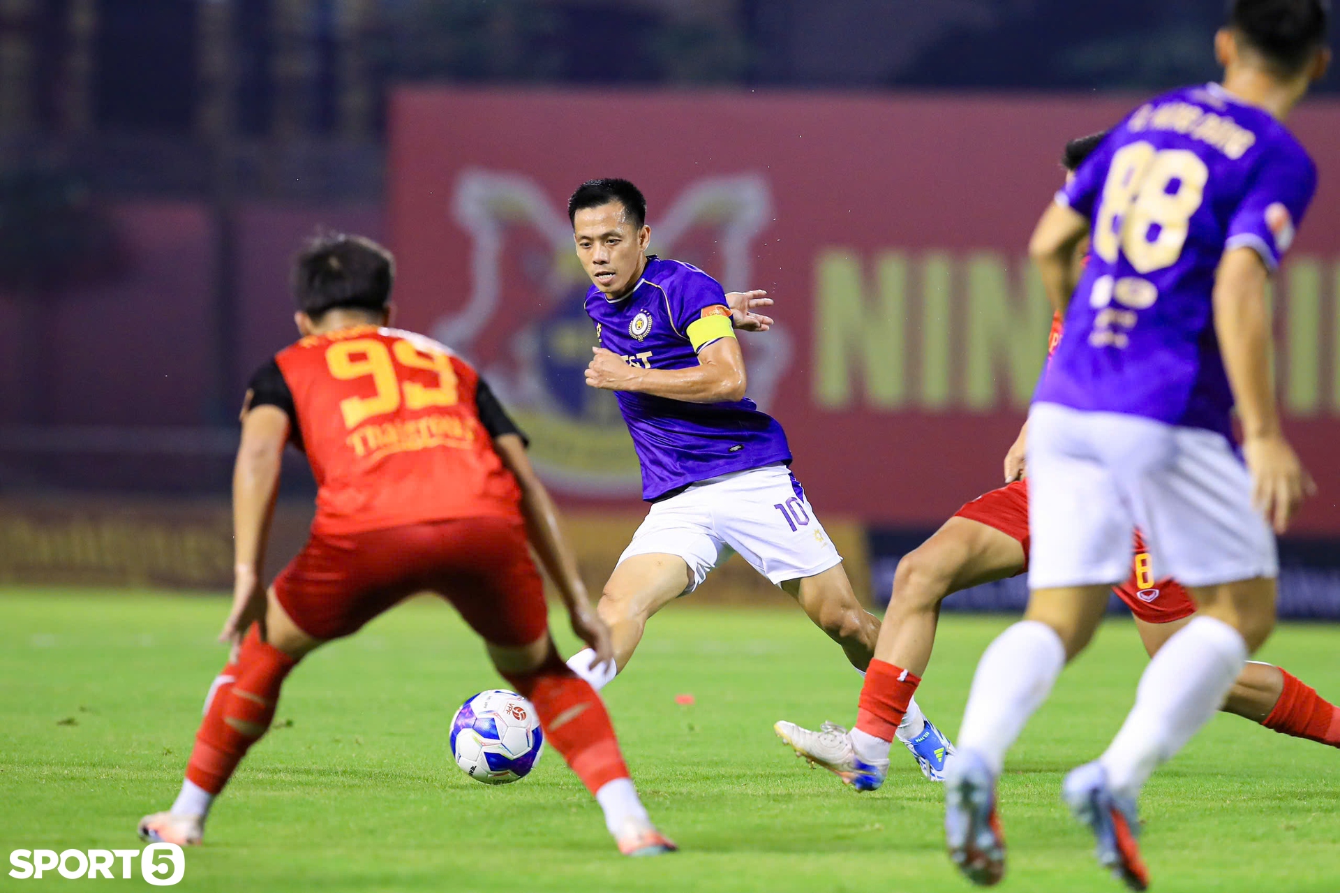 Trận cầu tâm điểm tại sân Ninh Bình thuộc vòng 20 V.League giữa CLB Ninh Bình và CLB Hà Nội tối ngày 24/4 đã diễn ra đúng như mong đợi của người hâm mộ với màn rượt đuổi tỷ số kịch tính. CLB Hà Nội sớm khẳng định vị thế bằng bàn mở tỷ số của Đỗ Hùng Dũng ngay từ phút thứ 3. Dù đội chủ nhà nỗ lực bám đuổi, nhưng bàn thắng quan trọng của Văn Quyết trong hiệp hai đã góp phần giúp đội khách bảo toàn thắng lợi sát nút 3-2.
