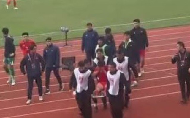 Cụ thể, phút 78 Văn Trường va chạm với cầu thủ Hàn Quốc chấn thương nặng phải rời sân bằng cáng.