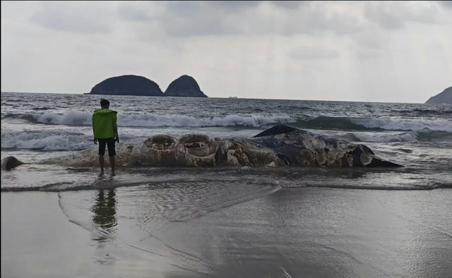 Theo hình ảnh được chia sẻ, xác cá voi đã trong tình trạng phân hủy nghiêm trọng, bốc mùi nặng.
