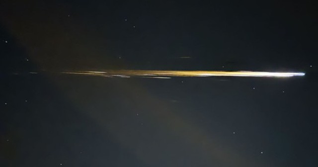 Một vật thể rực sáng trên bầu trời trong bức ảnh chụp từ TP Ventura, bang California - Mỹ tháng 4-2024, chính là mô-đun quỹ đạo Thần Châu 15 tái nhập bầu khí quyển - Ảnh: Christopher H./AMS