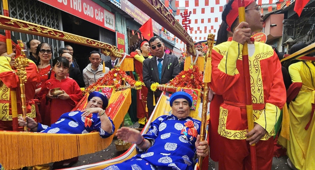 Ngày 23/2, nghìn người đổ về Di tích lịch sử, văn hóa quốc gia miếu Tiên Công, phường Liên Hòa, tỉnh Quảng Ninh để theo dõi nghi lễ rước "cụ Thượng" độc đáo.