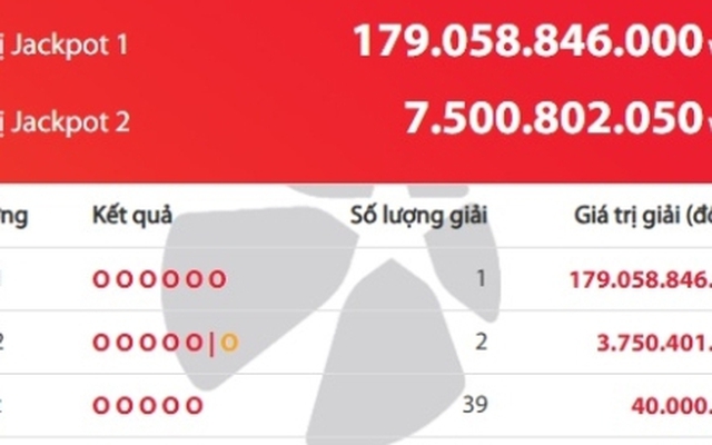 Như vậy, sau khi trừ thuế thu nhập theo quy định, chủ nhân tấm vé sẽ thực lĩnh hơn 161 tỷ đồng. Ngoài giải Jackpot 1, Vietlott cũng ghi nhận 2 vé trúng Jackpot 2.
