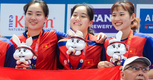 Chị em Thảo Vy và Thảo My (giữa) chỉ thi đấu nội dung 3x3 tại SEA Games 33