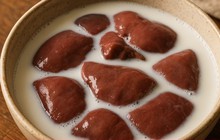 - Ngâm gan vào sữa tươi không đường, tỷ lệ 1:1 (500gr gan tương ứng 500ml sữa).