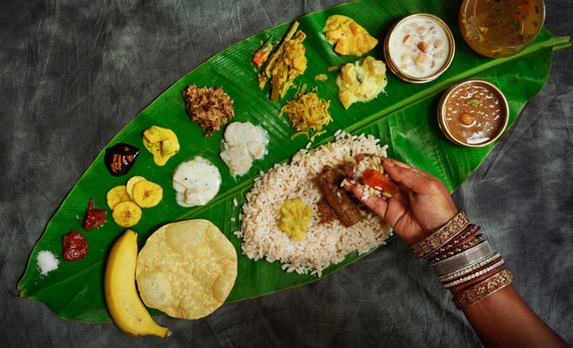 Tại nhiều vùng, đặc biệt là miền Nam Ấn Độ, đồ ăn thường được phục vụ trên lá chuối thay vì đĩa sứ. Đây là một lựa chọn phù hợp với văn hóa và thân thiện với môi trường. Khi thức ăn nóng được đặt lên lá chuối, các dưỡng chất và mùi thơm đặc trưng từ lá sẽ tiết ra, hòa quyện vào món ăn. Việc dùng tay trên bề mặt lá chuối tạo nên một trải nghiệm mộc mạc, gần gũi và giúp người ăn dễ dàng thao tác hơn dùng thìa, nĩa.