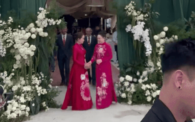 Khoảnh khắc mẹ chú rể rời đi trước khi nhà trai bước vào (Nguồn: @haituan1204)