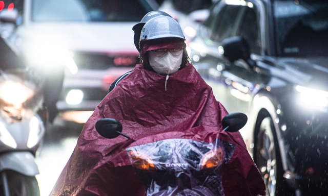 Sấm chớp kèm mưa to, gió lớn trút xuống Hà Nội khiến nhiều người đi đường bất ngờ.