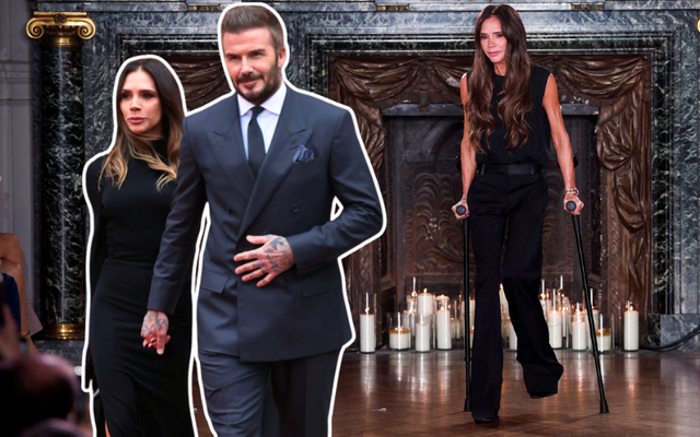 Victoria Beckham chống nạng sau chấn thương ở phòng tập thể dục, xuất hiện ở show diễn bộ sưu tập Thu Đông 2024/2025 (Ảnh Reuters).