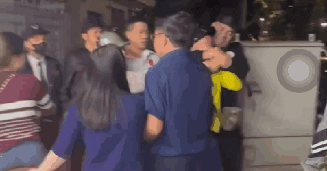 Nhóm người mặc áo bảo vệ có hành vi đánh người. Ảnh: Gif