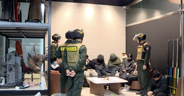 Lực lượng chức năng bắt giữ nhóm nhân viên của hệ thống Xôi Lạc TV. Ảnh cắt từ clip