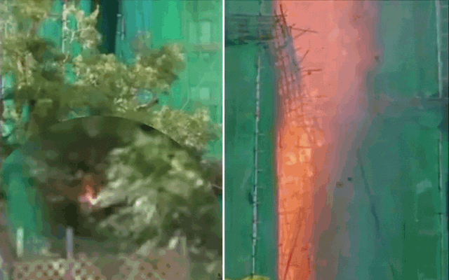 Chiều 26/11, một người dân đã quay lại được cảnh lửa bốc lên từ giàn giáo bên ngoài 1 trong các tòa nhà bị cháy, sau đó ngọn lửa nhanh chóng lan lên dọc theo lưới bảo vệ và giàn giáo.