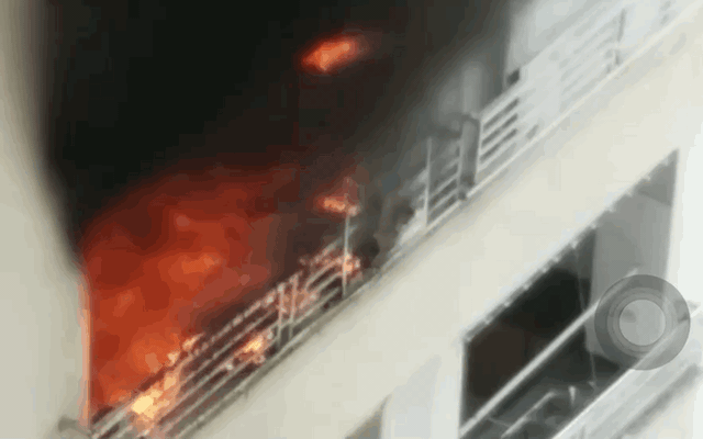 VIDEO: Ngọn lửa bốc ra ngùn ngụt từ căn hộ trên tầng 12 của chung cư Đại Thanh