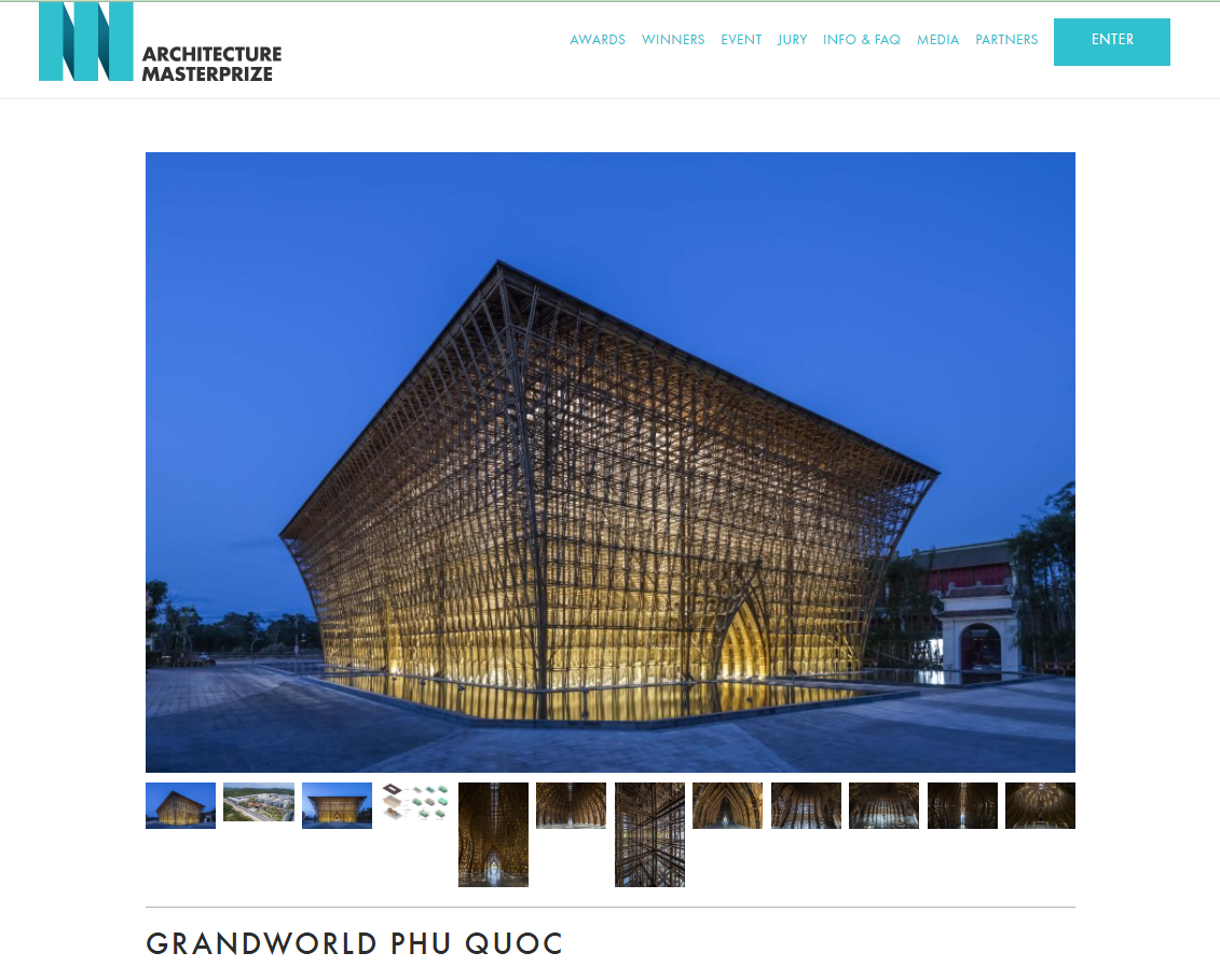 Trong số các công trình đa lĩnh vực do kiến trúc sư Việt Nam thiết kế được vinh danh tại giải thưởng Architecture MasterPrize 2023, nổi bật có dự án Grand World Phú Quốc của VTN Architects, được trao giải ở hạng mục “kiến trúc khách sạn”.