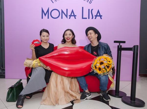 Hà Đỗ (góc trái) cùng Văn Mai Hương trong buổi ra mắt MV "Mona Lisa"