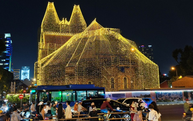 Tại khu vực Nhà thờ Đức Bà, đây một trong những điểm thu hút đông đảo người dân mỗi dịp Giáng sinh, công trình mang tính biểu tượng của thành phố năm nay được trang trí với khoảng 1.000 km dây đèn LED, tăng gấp đôi so với năm trước, bao phủ hai tháp chuông và không gian xung quanh. Khi màn đêm buông xuống, toàn bộ khu vực được thắp sáng, tạo nên khung cảnh nổi bật và thu hút sự chú ý của người tham quan và chụp ảnh.
