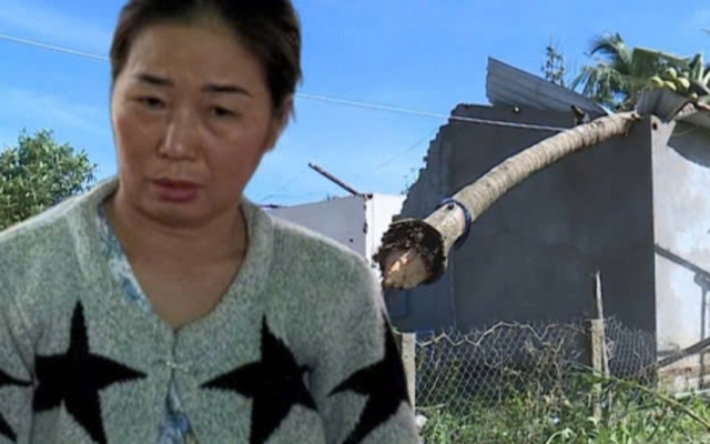 Tại thôn 4, những mái tôn đã bay mất, tường nứt gãy, cây dừa bật gốc đổ sập lên nhà dân. Giữa cảnh đổ nát ấy, hai gia đình phải gánh chịu mất mát lớn khi người thân mãi mãi ra đi trong khoảnh khắc thiên tai ập tới.