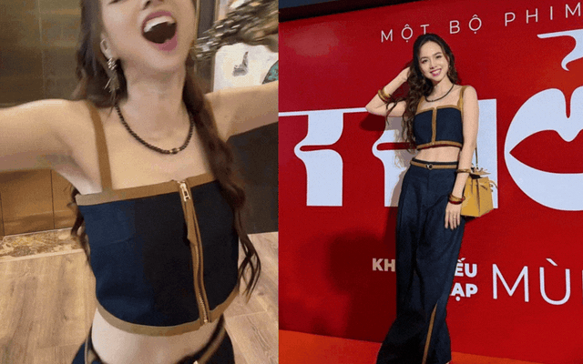 Đinh Ngọc Diệp diện một set đồ ôm sát với thiết kế hai dây bản mảnh, tông màu tối phối viền nâu tạo điểm nhấn cá tính. Phần áo dáng corset có đường khóa kéo chạy dọc thân trước không chỉ tăng thêm nét hiện đại mà còn tôn lên vòng eo nhỏ xíu, phẳng lì đáng ngưỡng mộ. Khi giơ tay chuyển động, vòng hai thon gọn của cô càng lộ rõ, mảnh mai nhưng vẫn săn chắc, cho thấy sự chăm chút kỹ lưỡng cho vóc dáng. Kiểu tóc tết lệch mềm mại cùng phụ kiện bông tai ánh kim giúp tổng thể thêm phần nổi bật. Ở tuổi ngoài 40, việc giữ được vòng eo nhỏ gọn và đường cong cân đối như vậy thực sự khiến nhiều người phải xuýt xoa ngưỡng mộ.