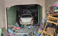 Chiếc ô tô húc đổ cổng và tường nhà, lao vào trong phòng vệ sinh.