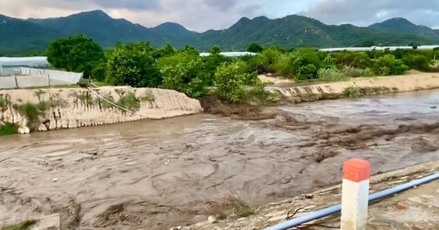 Tối 1-11, do mưa lớn kéo dài, hồ chứa nước của một trang trại chăn nuôi gà trên khu vực Cây Cà, thuộc xã Tuy Phong, tỉnh Lâm Đồng đã bị vỡ, khiến lượng nước lớn từ trên cao đổ xuống hạ nguồn.