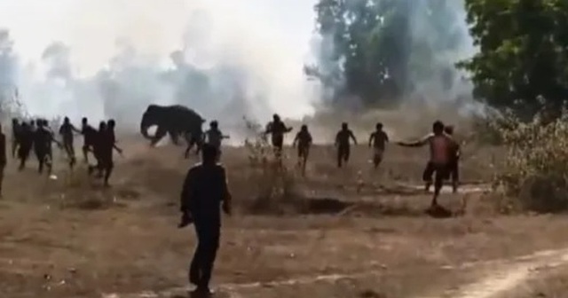 Người dân hoảng sợ bỏ chạy khi con voi tấn công.