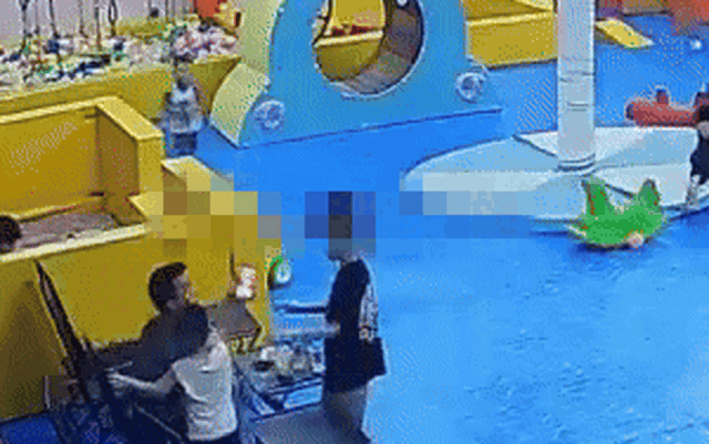 Hình ảnh cắt từ camera vụ bé trai 8 tuổi bị người lớn tát ù tai trong khu vui chơi ở Hà Nội