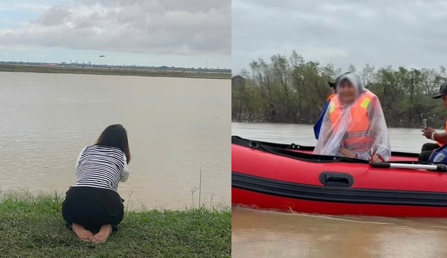 Chị Y. đau đớn gọi tên con bên bờ sông Lam. (Ảnh: VietNamNet)