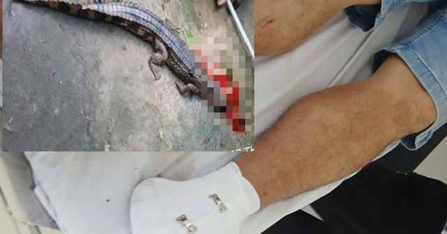 Phát hiện vụ việc, người dân đã đập chết con cá sấu và đưa người bị cá sấu cắn đến bệnh viện cấp cứu, khâu nhiều mũi.