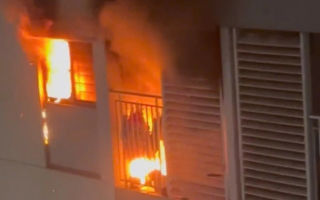 Đám cháy bốc lên từ căn hộ chung cư (Ảnh: Cắt từ video)