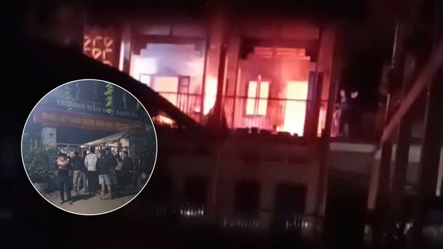 Trước đó, khoảng 20h ngày 13/11, tại Trường Mầm non Bạch Hà trên địa bàn xã xảy ra cháy lớn.