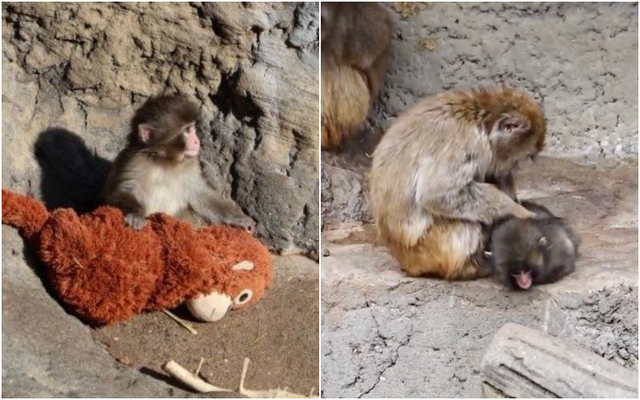 Khỉ Punch có chú đười ươi bông đồng hành từ bé (Ảnh: ecms2008)