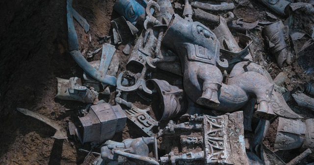 Bên trong một "hố tế lễ" ở khu vực nghi lễ của thành cổ Tam Tinh Đôi, loại vũ khí sắt bất thường nói trên đã được phát hiện.