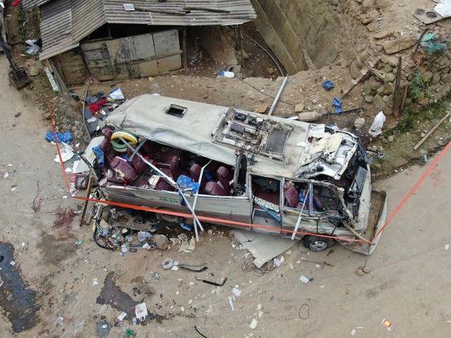 Đoàn xe gặp nạn khi chỉ còn cách điểm đến vài cây số. (Ảnh: Tiền Phong)