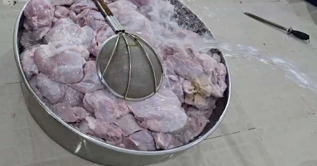 Hình ảnh phản ánh Sago Food dùng thịt nghi hết hạn chế biến bữa ăn cho học sinh. Ảnh: Báo Dân Việt