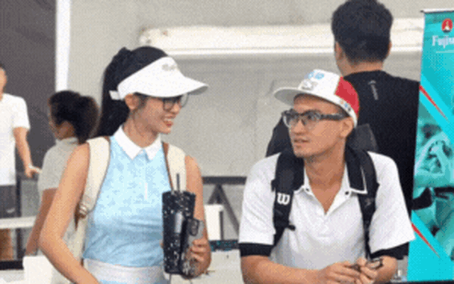 Vũ Thuý Quỳnh liên tục cười đùa với bạn trai giữa sân pickleball