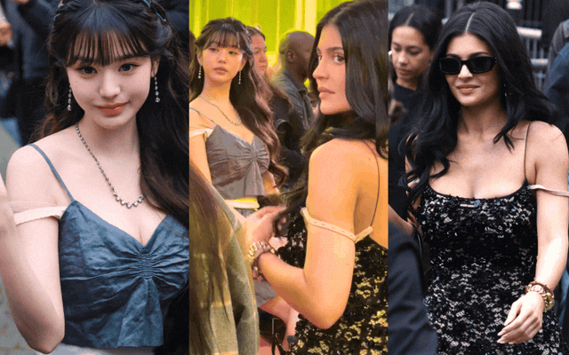 Trong một khung hình chung hiếm hoi được ghi lại, trên hàng ghế đầu Jang Wonyoung và Kylie Jenner ngồi đối diện nhau tạo nên một sự đối lập thú vị. Nếu Wonyoung như một nàng thơ thanh xuân, đại diện cho nét ngọt ngào, hiện đại mà người ta luôn nhớ về Miu Miu thì Kylie lại là "biểu tượng sexy" của Hollywood, quyền lực và thời thượng. Từ outfit của 2 cô nàng IT-girl có thể Miu Miu đều đang lăng xê mốt lộ dây nội y vô cùng quyến rũ trên các thiết kế có phần đối lập.