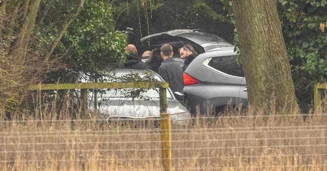 Khoảng 6 chiếc xe không biển số xuất hiện tại Wood Farm thuộc điền trang Sandringham, ở Norfolk - Anh, ngay sau 8 giờ sáng 19-2. Ảnh: Bav Media