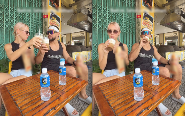 Trong clip, hai vị khách Tây ngồi trên những chiếc ghế nhựa thấp, giữa không gian hè phố rất Việt Nam. Xung quanh là tiếng xe cộ, tiếng nói chuyện rì rầm và nhịp sống đời thường. Trên tay họ là ổ bánh mì nóng hổi, kẹp đầy nhân, cùng hai ly cà phê muối được đặt trên bàn. Họ vừa ăn, vừa nhâm nhi cà phê, vừa tỏ ra thích thú, liên tục gật gù, trao đổi với nhau bằng ánh mắt đầy hào hứng.