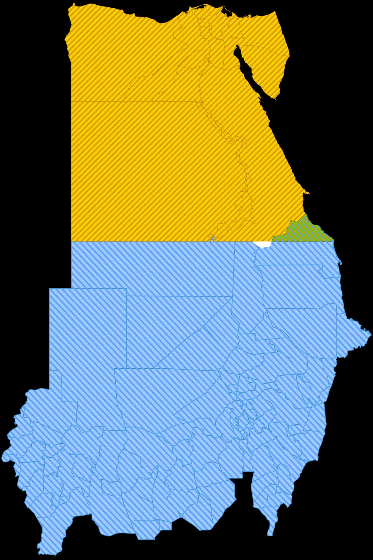 Đầu tiên là đường biên giới chính trị thẳng tắp được vạch ra vào năm 1899 sau Chiến tranh Mahdist. Tuy nhiên, chỉ ba năm sau, vào năm 1902, họ lại vẽ thêm một đường "ranh giới hành chính" uốn lượn khác nhằm phù hợp hơn với sự phân bố của các bộ lạc địa phương. Sự chồng chéo này đã tạo ra hai khu vực tranh chấp: Tam giác Hala'ib rộng lớn, giàu tài nguyên nằm giáp biển và Bir Tawil nhỏ bé, khô cằn nằm sâu trong đất liền.